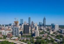 With a new academic year well underway, it’s time to take to the skies and see how the Savannah College of Art and Design’s rapidly expanding Atlanta campus has transformed a former low-rise motel and other underused property in Midtown’s northernmost blocks.